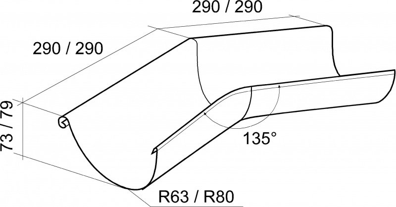 Используются для изменения направления потока воды, монтируются на внешних и внутренних углах кровли в условиях, когда угол на 90° неприменим: сложная кровля, эркеры и т.п.
